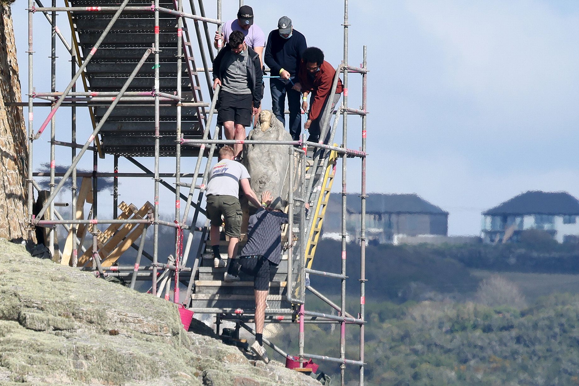 Si el rodaje de hoy en Cornualles nos ha respondido dudas, las de ayer nos las ha planteado. Aunque lo primero que mencionamos es el túmulo que sirve portada del artículo, en que el símbolo Velaryon está cambiado y vemos cómo es un caballo mamífero con aleta de pez y no un caballito de mar como explicamos la semana pasada.