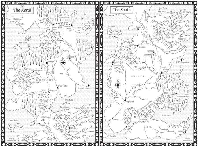 Comparándolo con lugares del mundo real, los Siete Reinos son más grandes que Australia pero más pequeños que Brasil en superficie: recordemos, el continente completo de Poniente es mucho más grande. El Norte es más pequeño que la parte europea que la parte europea de Rusia, pero más grande que Argentina. El Dominio y Dorne son casi el doble de grandes que Francia y España, países del mundo real con los que se les suele comparar.