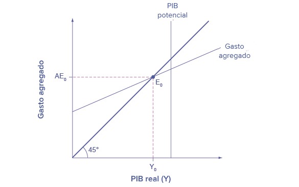 Estas cuatro variables combinadas equivalen a lo que se denomina gasto agregado. Cuando esté en equilibrio, el gasto agregado será igual al PIB.