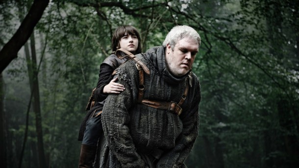Sigue su camino hacia el muro transportando a Bran. Por precaución se alejan de los caminos, pues los niños Stark están siendo buscados. Acampan una noche en Corona de la Reina cerca de Jon Nieve.