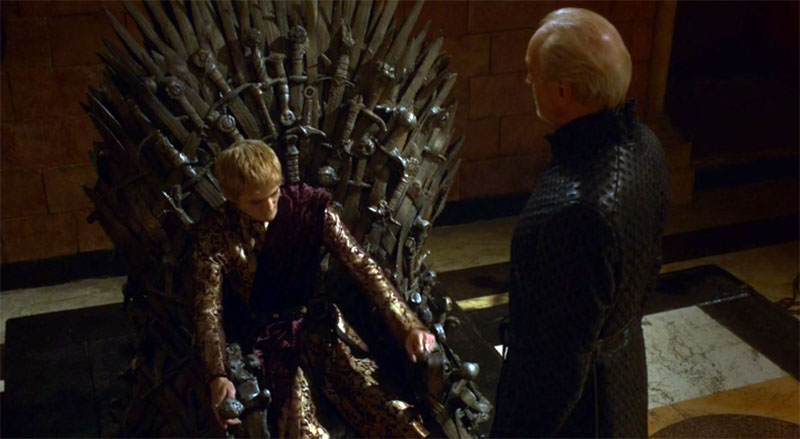 De las escenas que tienen lugar en Desembarco del Rey, no hay ninguna duda de que la que enfrenta a Tywin con Joffrey es la mejor. En primer lugar, ese lenguaje no verbal que hace de este duelo una delicia interpretativa y que deja claro sobre el papel que por mucho que se envalentone Joffrey, el hombre que manda es su abuelo.