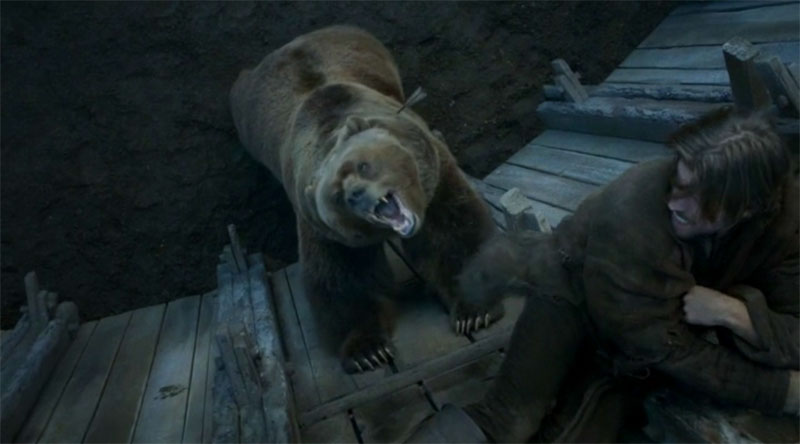 Cuando llega a Harrenhal tenemos la escena que da nombre al capítulo. Como no podía ser de otra forma Jaime salva a la chica, aunque esperaba un poco de mano izquierda con el oso, para demostrarnos que el Jaime que conocíamos puede volver con duro entrenamiento.