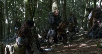 Una vez saltado el Muro en el anterior capítulo, ahora ya nos encontramos en su base (nos han ahorrado un cómodo y placentero descenso), con la tropa de salvajes avanzando hacia el Castillo Negro. El grupo parece ahora sí, más numeroso de lo que se veía en los planos de la escalada.