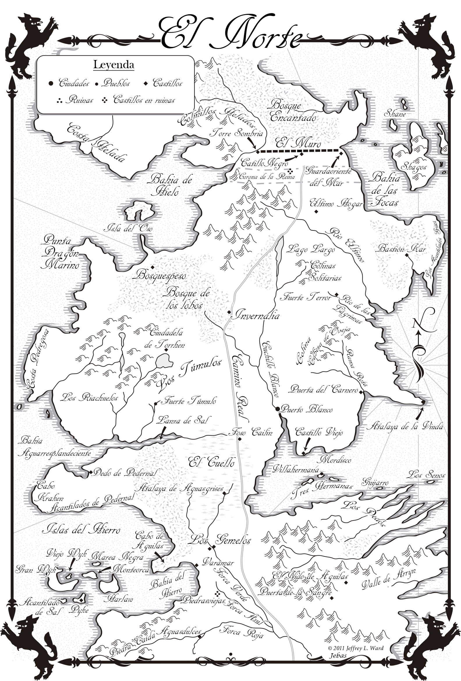 Aquí el mapa de El Norte, que abarca desde las Tierras de los Ríos hasta el Muro.