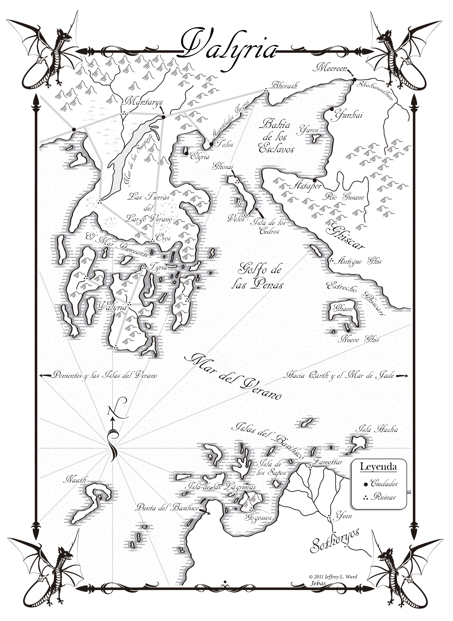 Aquí el mapa de las tierras del Mar del Verano, que incluye ciudades como Meeren, Yunkai, Astapor o las antiguas ruinas de Valyria y las tierras del Largo Verano.