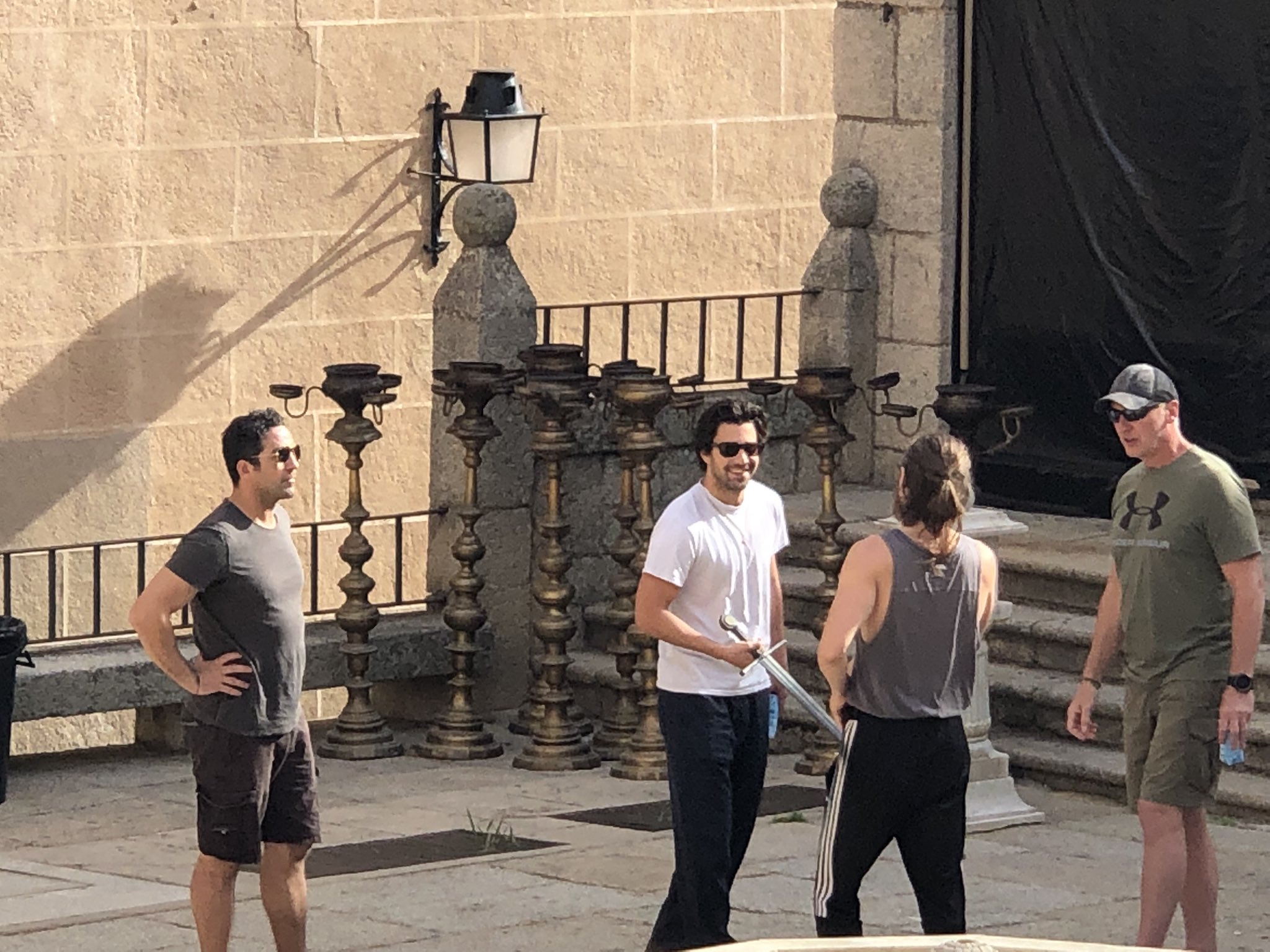Ayer se pudieron ver en Cáceres a extras vestidos como miembros de la Guardia de la ciudad, los célebres capas doradas. Iban acompañados de caballos: son los primeros que vemos en el rodaje en España, pues no pudimos observarlos en las grabaciones en La Calahorra.