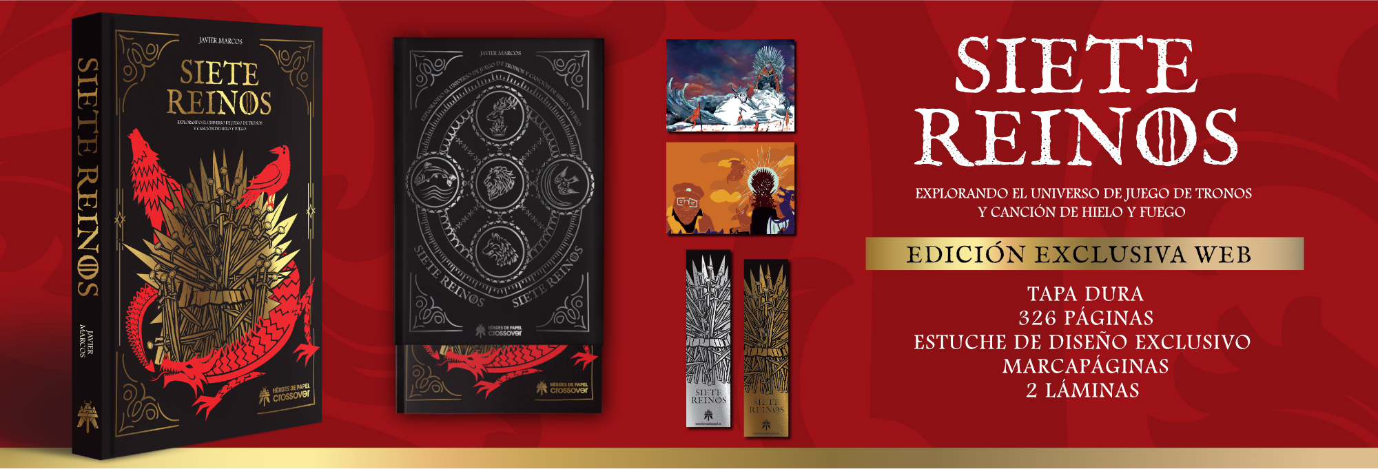 Ya podéis reservar en la web de Héroes de Papel tanto la edición normal como la coleccionista, y en Akira Comic una que incluye un mapa especial de Poniente con personajes como bonus exclusivo. Sea porque os interesa el tema, sea por apoyarnos tras 13 años hablando de nuestra pasión, sería un sueño cumplido que SIETE REINOS fuera, por fin de forma física y tangible, parte de vuestra vida. Gracias por estar al otro lado.